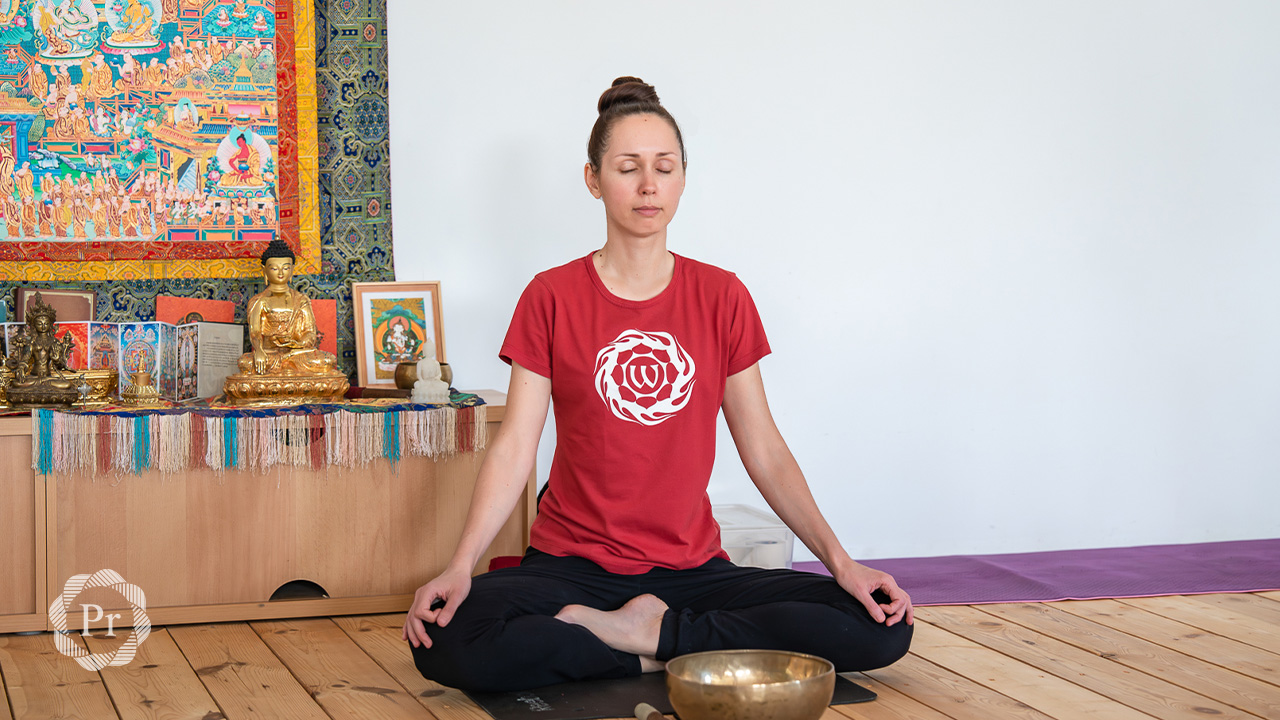 - Поза: сядьте устойчиво с прямой спиной. Для начинающих оптимальна ваджрасана (поза алмаза). Более продвинутые могут использовать падмасану (поза лотоса) или сиддхасану (совершенная поза). Позвоночник вытянут вверх, подбородок параллелен полу. Руки свободно лежат на коленях, можно соединить кончики большого и указательного пальцев (джняна-мудра). Сделайте полный выдох.